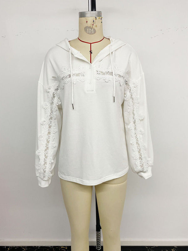 New lace patchwork hooded thin sweatshirt